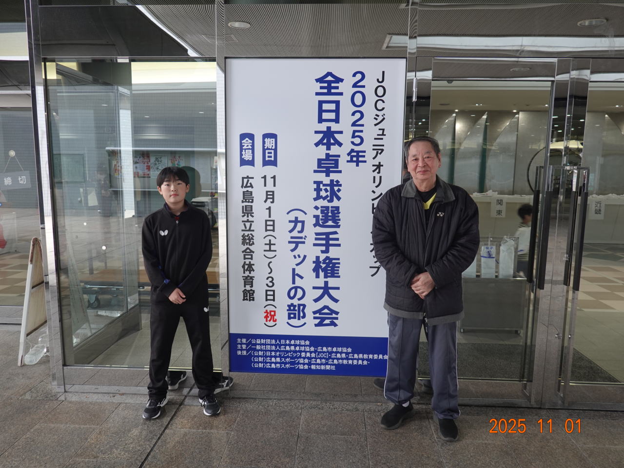 2年越しの目標を達成し、千葉県代表となって臨んだ全日本卓球選手権大会(カデットの部)でしたが、横山君は吉田卓球場の吉田選手に1-3で敗退し、初戦を飾ることはできませんでした。